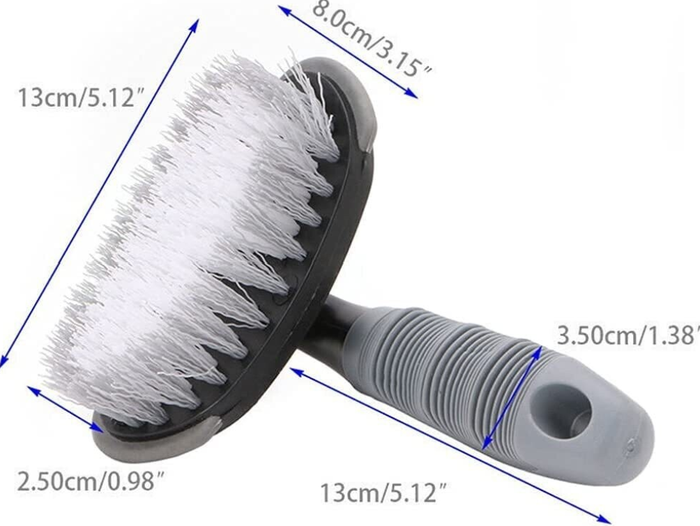 A rough brush with a specialized handle, used for cleaning rubber.