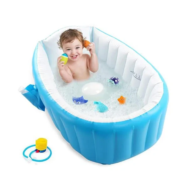 When a baby has outgrown the infant bathtub, the Buringer Inflated Baby Tub helps to smooth the big tub transition and make the bathing experience better for you and your little one. The textured non-slip surface keeps baby secure, and inflatable padded design creates a comfy and safe environment for baby to splash around. The bathtub deflates and folds easily, making it perfect for home or travel!