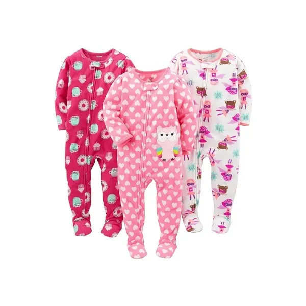 Carter's Simple Guys Toddler and Infant Girls' Flame Resistant Fleece Pajamas, 3 Pack